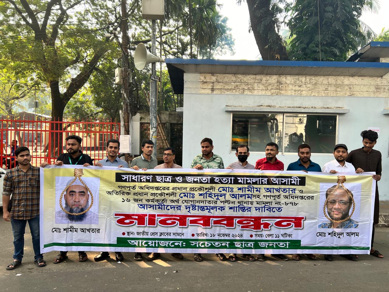 এর আগে, ১৮ নভেম্বর ২০২৪ জাতীয় প্রেস ক্লাবের সামনে শহীদুল আলমের গ্রেপ্তার ও দৃষ্টান্তমূলক শাস্তির দাবিতে মানববন্ধন করেন সচেতন ছাত্র-জনতা। দৈনিক মানবকথাসহ একাধিক জাতীয় প্রিন্ট ও ইলেকট্রনিক মিডিয়ায় তাঁর দুর্নীতি, অনিয়ম ও অনৈতিক কর্মকাণ্ড নিয়ে ধারাবাহিক প্রতিবেদন প্রকাশিত হয়।