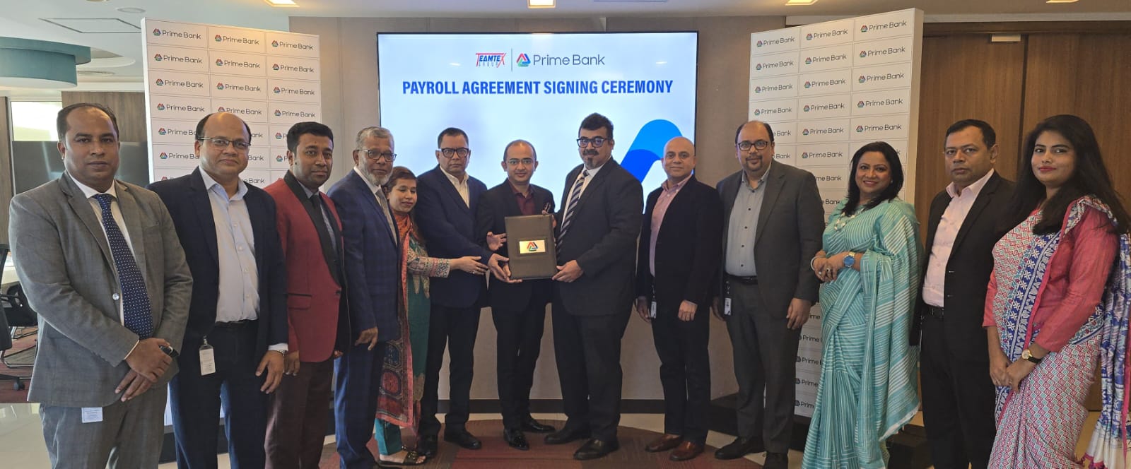 Staff  Reporter  :  Prime Bank PLC. recently signed Payroll Banking agreement with Bando Eco Apparels Limited, a sister concern of Teamtex Group, is a Bangladeshi Ready-made Garment (RMG) manufacturer, specializing in woven shirts and other apparel, to offer comprehensive Payroll Banking services. The signing ceremony took place at Bank’s Corporate Office in Dhaka.