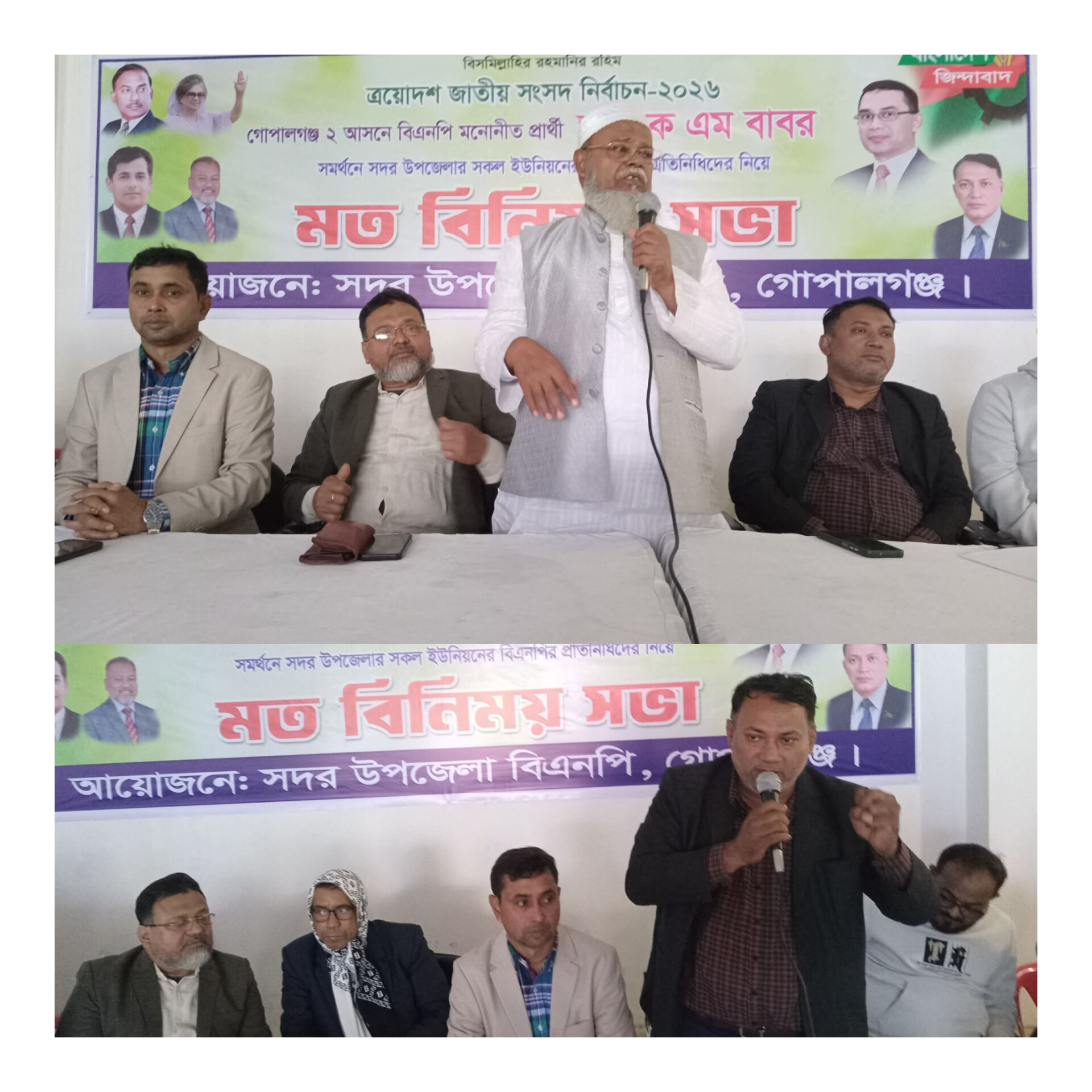 সদর উপজেলা বিএনপির সভাপতি শিকদার শহীদুল ইসলাম লেনিনের সভাপতিত্বে এবং সাধারণ সম্পাদক ফজলুল কবির দারার সঞ্চালনায় সভায় প্রধান অতিথি হিসেবে উপস্থিত ছিলেন জেলা বিএনপির আহ্বায়ক শরীফ রফিকউজ্জামান। বিশেষ অতিথি হিসেবে বক্তব্য রাখেন জেলা বিএনপির সদস্য সচিব অ্যাডভোকেট আবুল খায়ের এবং গোপালগঞ্জ-২ আসনের বিএনপি মনোনীত প্রার্থী ডা. কে এম বাবর।
