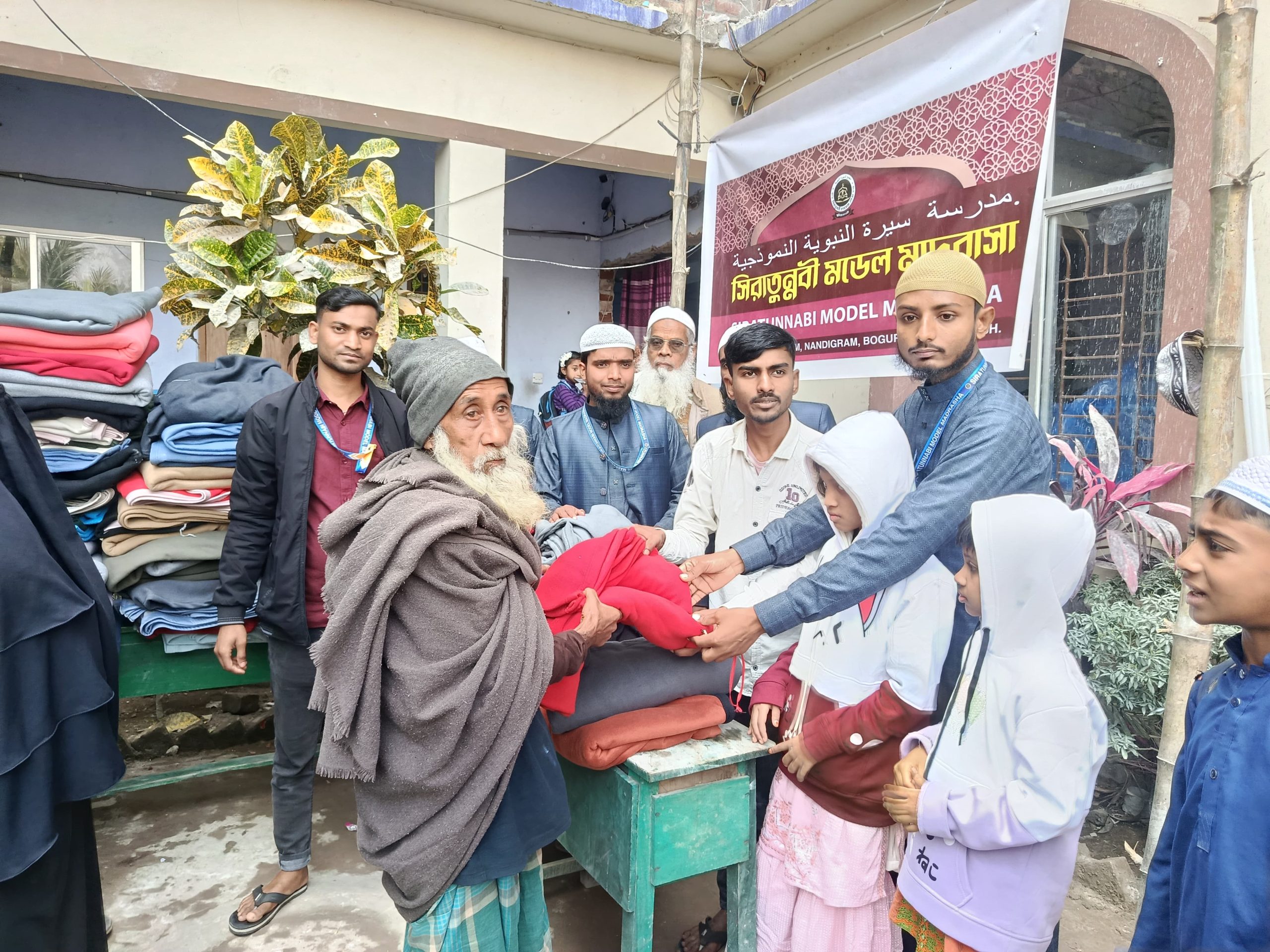 নন্দীগ্রাম (বগুড়া) প্রতিনিধি : বগুড়া জেলার নন্দীগ্রাম উপজেলা ৪নং থালতা মাঝগ্রাম ইউনিয়নের সিরাতুন্নাবী মডেল মাদ্রাসার উদ্যোগে কিছু অসহায়, দরিদ্র,গরিব-দুঃখী, খেটে খাওয়া মানুষ, মাদ্রাসার ছাত্র-ছাত্রী সহ আনুমানিক ৫০০জন কে শীতবস্ত্র বিতরণ করেন।সিরাতুন্নাবী মডেল মাদ্রাসার সুশিক্ষক দ্বারা পরিচালিত করা হয়।
