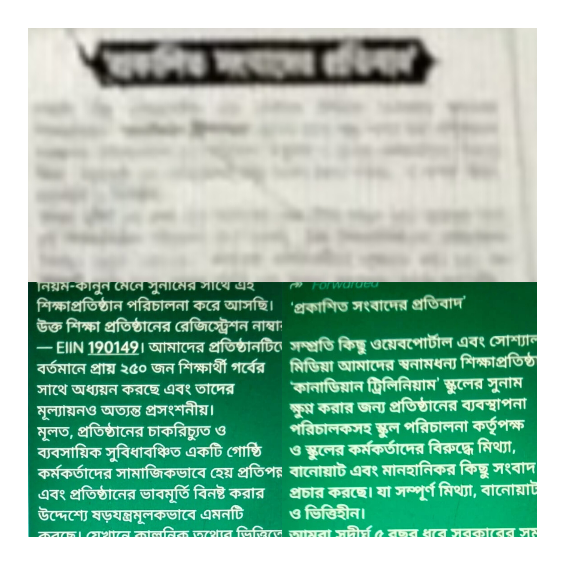 সামাজিক যোগাযোগমাধ্যমে অভিযোগের প্রতিক্রিয়া : সম্প্রতি একজন শিক্ষক সামাজিক যোগাযোগমাধ্যমে স্কুল সংশ্লিষ্ট অভিজ্ঞতা তুলে ধরে একটি পোস্ট দেন বলে জানা গেছে। ওই পোস্ট ঘিরে শিক্ষাঙ্গনে আলোচনার সৃষ্টি হলেও পরবর্তীতে পোস্টটি আর দৃশ্যমান নেই। এ বিষয়ে সংশ্লিষ্ট সামাজিক যোগাযোগমাধ্যম গ্রুপের প্রশাসকদের বক্তব্যও পাওয়া যায়নি।
