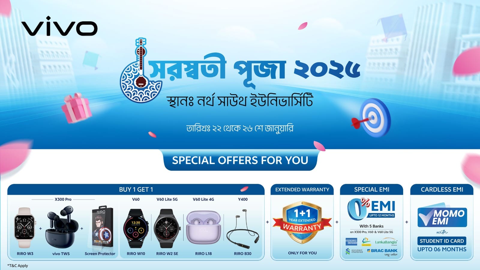 Staff  Reporter  :  Global smartphone brand vivo, the title sponsor of North South University’s Saraswati Puja 2026, has introduced a range of exclusive offers and interactive tech experiences for students. Aimed at making each day of the festival more vibrant and memorable, vivo’s special activations will be available on the NSU campus throughout the celebration.