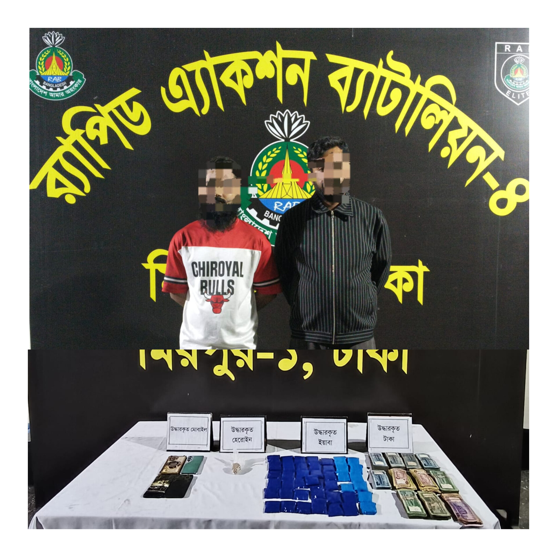 রাজধানীতে র‍্যাবের অভিযান  : ৮৫২০ পিস ইয়াবা ট্যাবলেট ও ৮ গ্রাম হেরোইনসহ ২ জন মাদক ব্যবসায়ীকে গ্রেফতার