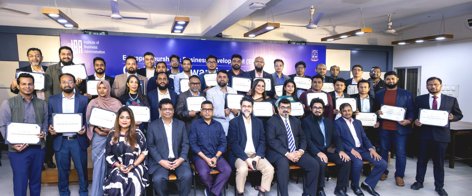 The ceremony commenced with a welcome address by Professor Dr. Khaled Mahmud, who underscored the significance of structured entrepreneurial education in fostering capable and future-ready business leaders. The event also featured insightful speeches by Professor Dr. Md. Mohiuddin, Professor Mohammad Ridhwanul Haq, PhD (Coordinator, MDP) and Professor Sheikh Morshed Jahan, who highlighted the vision, objectives and long-term impact of the EBD program in nurturing entrepreneurial talent.