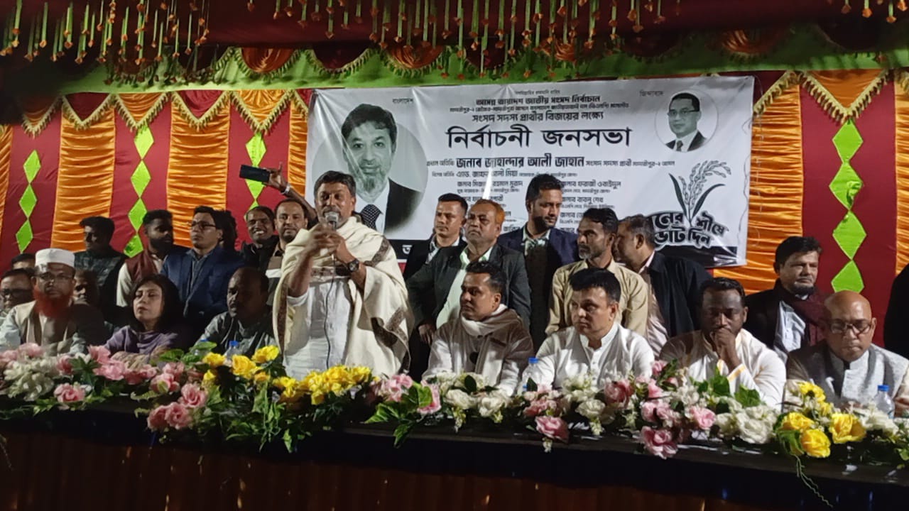 মাদারীপুরের শিরখাড়ায় নির্বাচনী জনসভা, বক্তব্য দেন জাহান্দার আলী মিয়া