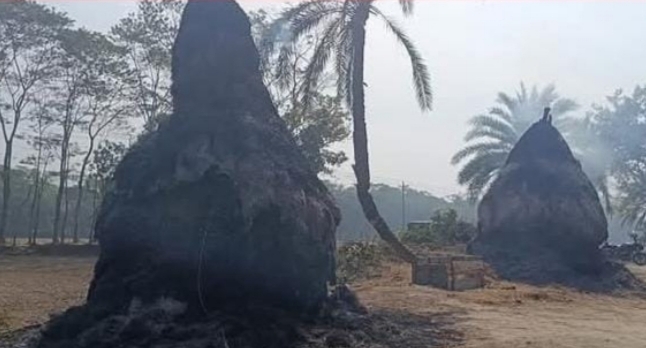 শুক্রবার (৩০ জানুয়ারি) গভীর রাতে এ অগ্নিকাণ্ডের ঘটনা ঘটে। ক্ষতিগ্রস্তরা হলেন শ্যামল সাহা ও রনজিৎ শীল। স্থানীয় সূত্র জানায়, রাত আনুমানিক আড়াইটার দিকে শ্যামল সাহার একটি ও রনজিৎ শীলের দুটি খড়ের গাদায় দুর্বৃত্তরা আগুন লাগিয়ে পালিয়ে যায়।