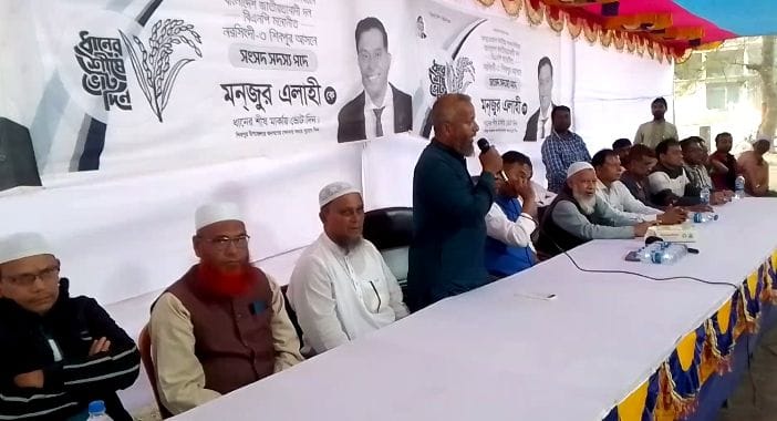 নরসিংদীর শিবপুরে ধানের শীষ মার্কায় ভোট চাইলেন বিল্লাল চেয়ারম্যান