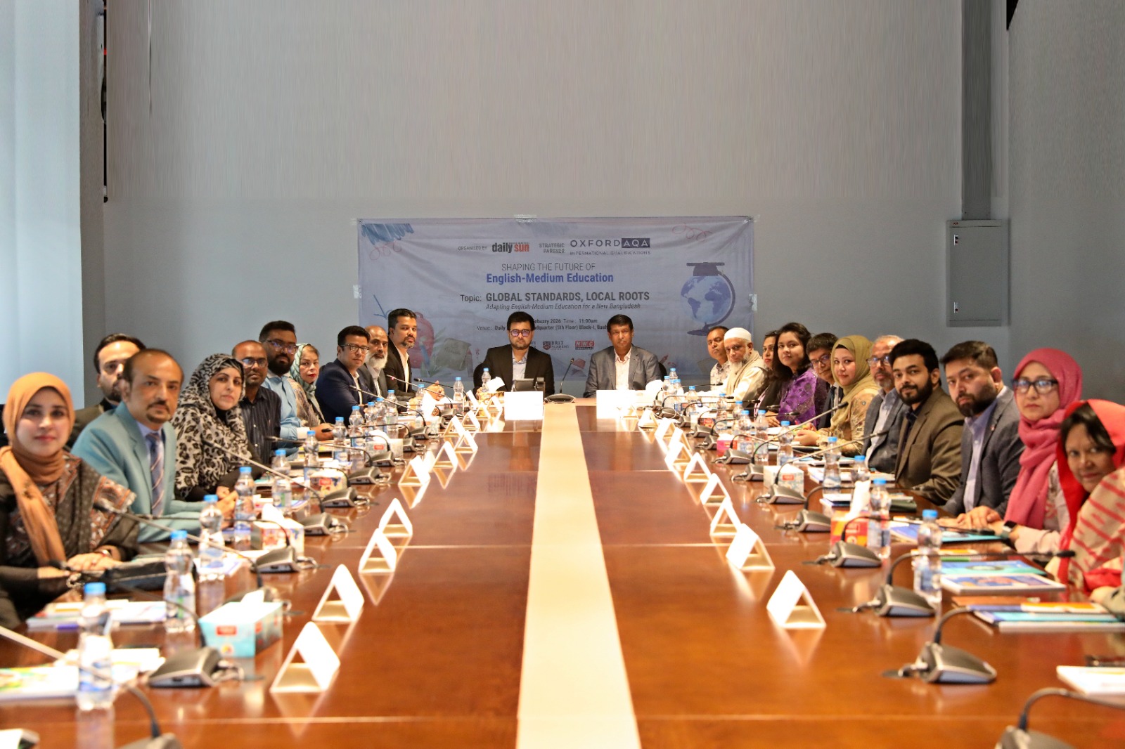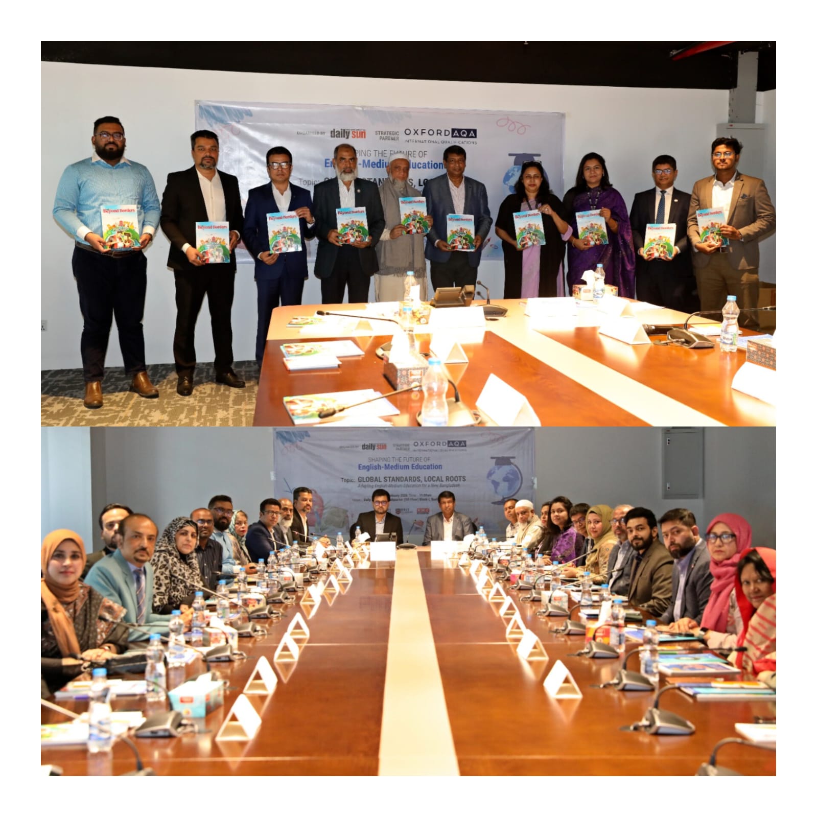 নিজস্ব প্রতিবেদক : ডেইলি সানের উদ্যোগে “Global Standards, Local Roots: Adapting English-Medium Education for a New Bangladesh” শীর্ষক একটি তাৎপর্যপূর্ণ রাউন্ড টেবিল অনুষ্ঠিত হয়েছে। ইন্টারন্যাশনাল এক্সাম বোর্ড OxfordAQA, এডুকেশন কনসালটেন্সি NWC এবং Brit Academy London-এর যৌথ পার্টনারশিপে ডেইলি সানের নিজস্ব কার্যালয়ে এ আয়োজন সম্পন্ন হয়।