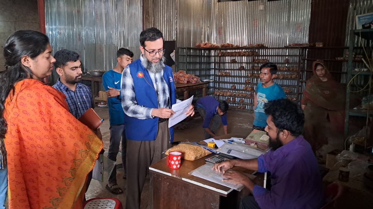 এতে বিএসটিআই’র গুণগত মানসনদ গ্রহণ না করে অস্বাস্থ্যকর পরিবেশে ‘বিছুট, পাউরুটি ও কেক’ উৎপাদন ও বিক্রি-বিতরণ এবং মোড়কে অবৈধভাবে বিএসটিআই’র মানচিহ্ন ব্যবহার করায় নগরীর বিসিক শিল্প নগরী এলাকায় অবস্থিত মেসার্স ন্যাশনাল বেকারী প্রতিষ্ঠানটিকে ১০,০০০ (দশ হাজার টাকা) জরিমানা করা হয়।