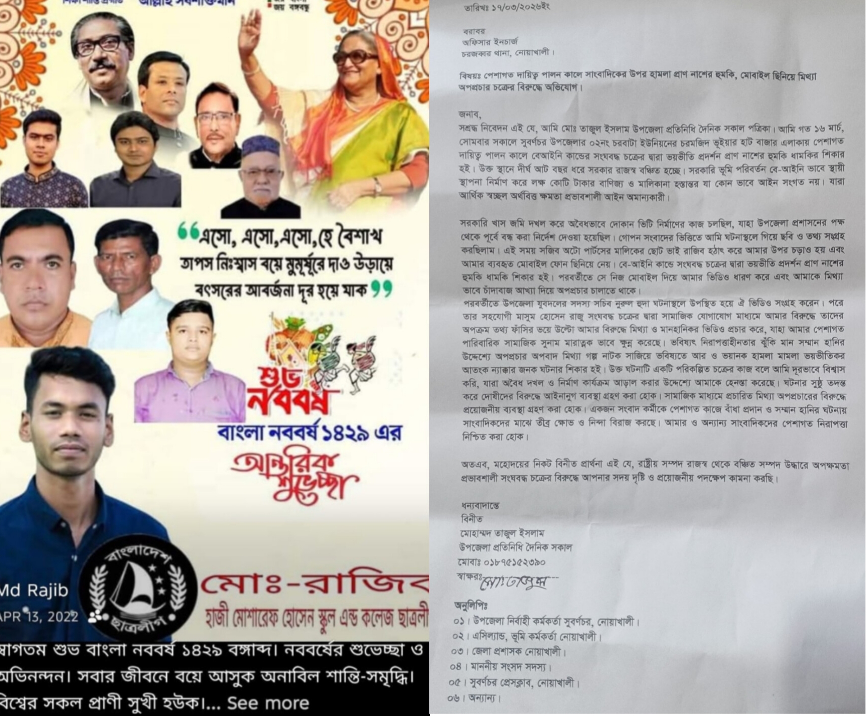 নোয়াখালীর সুবর্ণচরে খাসজমি দখলের তথ্য সংগ্রহ করতে গিয়ে হেনস্তার শিকার সাংবাদকর্মী ও মোবাইল ছিনিয়ে অপপ্রচারের অভিযোগ