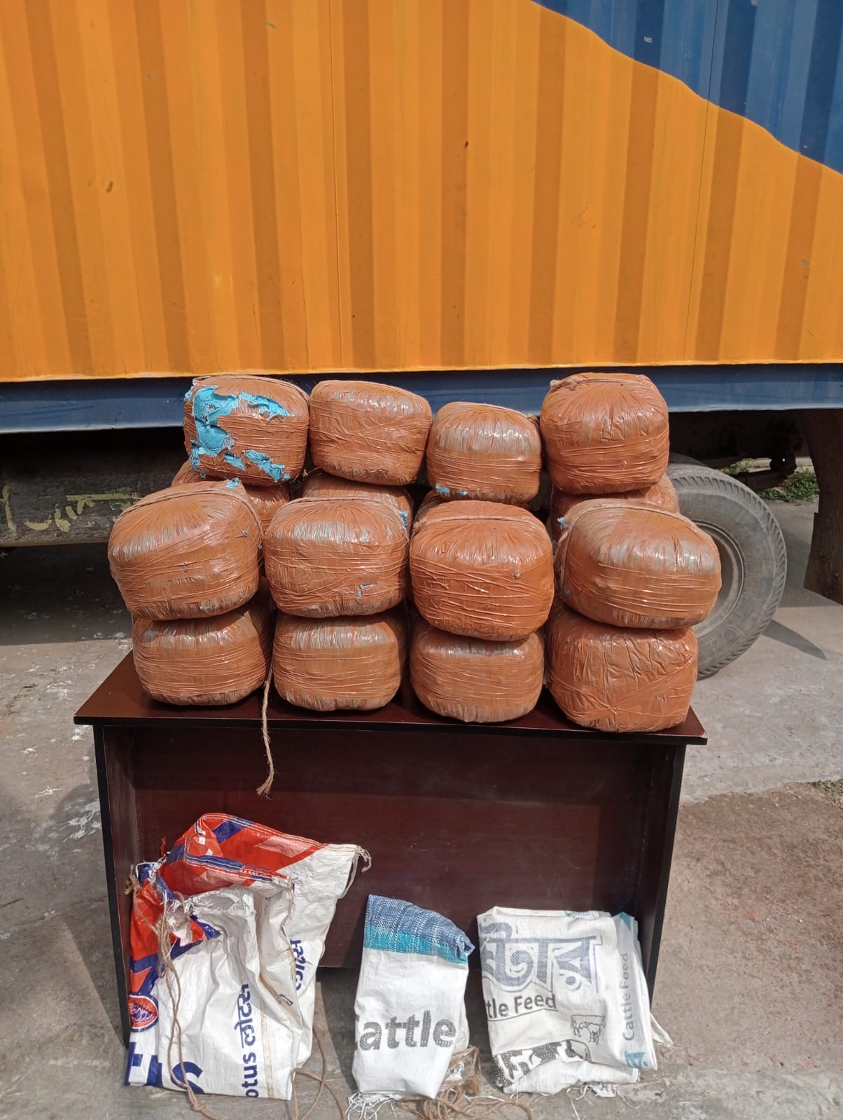 পরে স্থানীয়দের উপস্থিতিতে গাড়িটি তল্লাশি করে তিনটি বস্তার মধ্যে ২০টি প্যাকেট গাঁজা পাওয়া যায়। প্রতিটি প্যাকেটের ওজন ৩ কেজি করে মোট ৬০ কেজি গাঁজা উদ্ধার করা হয়।