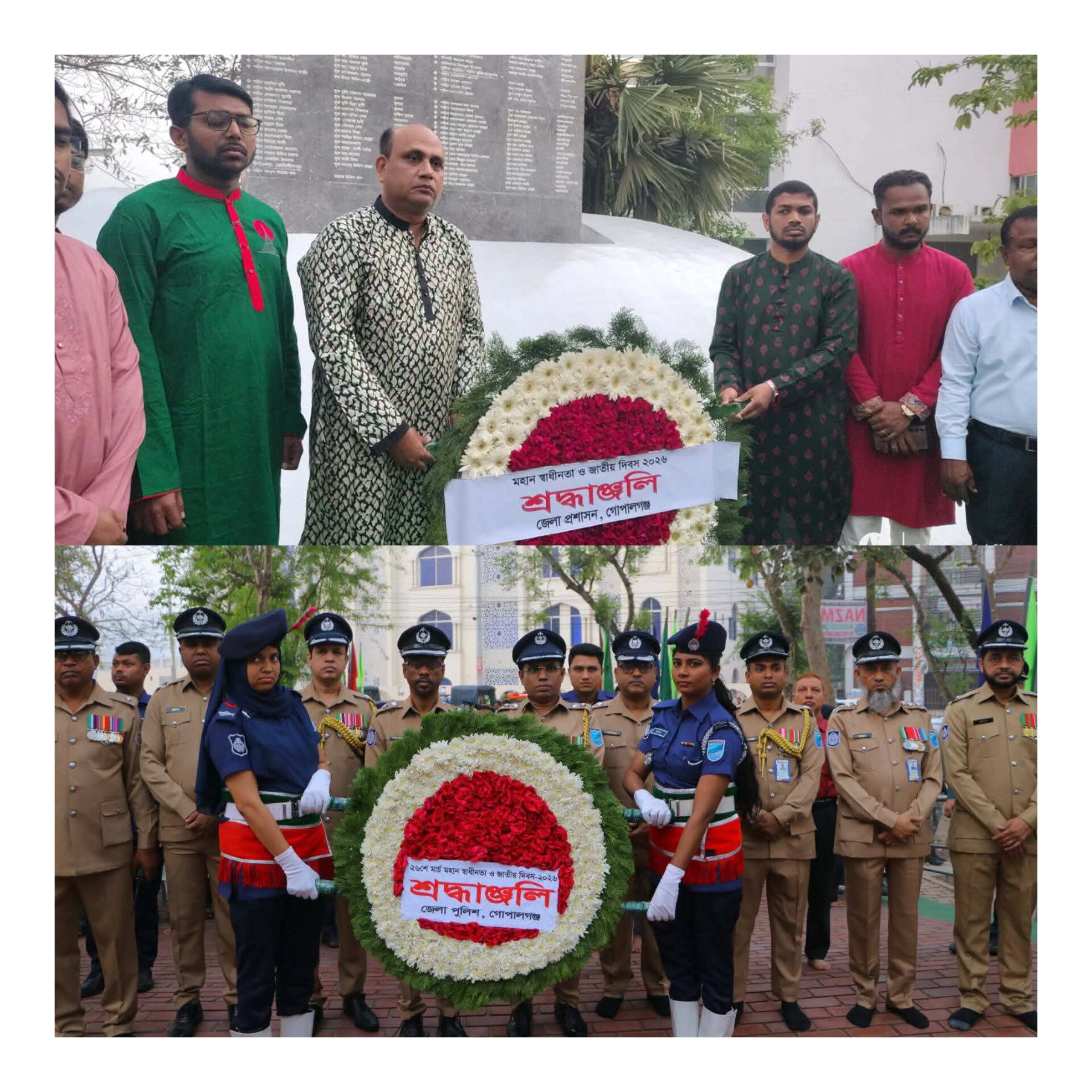 মোঃ সাইফুর রশিদ চৌধুরী : বিনম্র শ্রদ্ধা আর গভীর কৃতজ্ঞতায় মহান স্বাধীনতা ও জাতীয় দিবস উদযাপনের লক্ষ্যে গোপালগঞ্জে দিনব্যাপী বর্ণাঢ্য কর্মসূচি গ্রহণ করেছে জেলা প্রশাসন। আজ ২৬ মার্চ সূর্যোদয়ের সাথে সাথে সকল সরকারি, আধা-সরকারি, স্বায়ত্তশাসিত ও বেসরকারি ভবনে জাতীয় পতাকা উত্তোলনের মধ্য দিয়ে দিবসের শুভ সূচনা করা হয়। একই সময়ে গোপালগঞ্জ ক্রিকেট স্টেডিয়াম সংলগ্ন এলাকায় ৩১ বার তোপধ্বনির মাধ্যমে বীর শহীদদের প্রতি শ্রদ্ধা জানানো হয়।