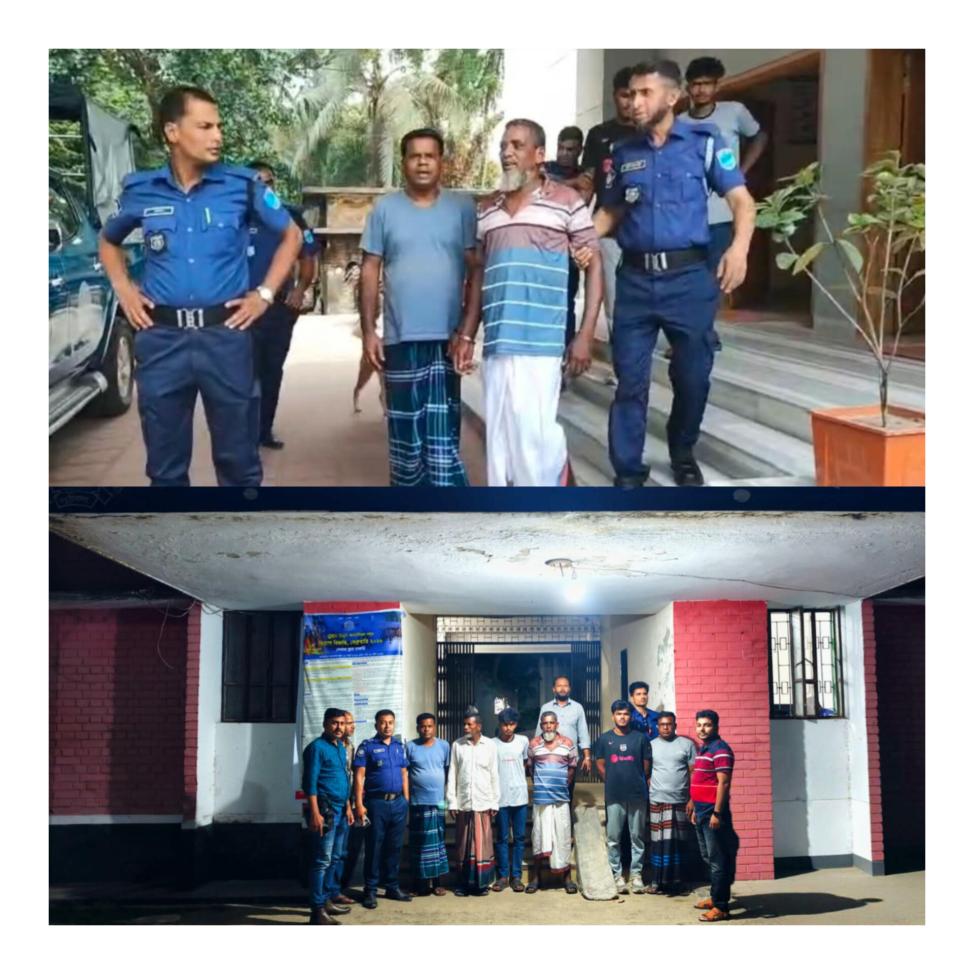 গ্রেপ্তারকৃতরা হলেন— বর্ষাপাড়া গ্রামের কলম বিশ্বাসের ছেলে হাফিজুর বিশ্বাস (৩৫), কাউছার বিশ্বাস (৪২), কুব্বাত বিশ্বাস (৫৫), কাউসার বিশ্বাসের ছেলে শ্রাবণ বিশ্বাস (১৯),মোজাহের বিশ্বাসের ছেলে পান্না বিশ্বাস (৪৮) ওপান্না বিশ্বাসের ছেলে রুমান বিশ্বাস (১৮)। রবিবার দুপুরে গ্রেপ্তারকৃতদের আদালতে পাঠানো হয়েছে বলে জানিয়েছে পুলিশ।