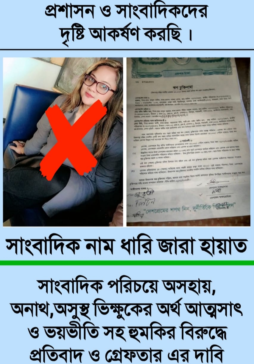 নিজস্ব প্রতিবেদক : চতুর্থ প্রধান স্তম্ভ হিসেবে বিবেচিত মহান পেশা সাংবাদিকতা।যা জনকল্যাণ ও ন্যায়ের জবাবে আপোষহীন এক লেখনী যুদ্ধ। সেই যুদ্ধের যোদ্ধা সাংবাদিক। সাংবাদিক এর কলম কথা বলে সমাজে ঘটে যাওয়া অন্যায়, অনিয়ম ও দূর্নীতির বিরুদ্ধে। কিন্তু সাংবাদিকতার পরিচয় বহন করে যখন কোন ব্যক্তি, নিজ স্বার্থ ও অপরাধকে সংগঠনে মরিয়া তখন কি তাকে সাংবাদিকতা বলে?