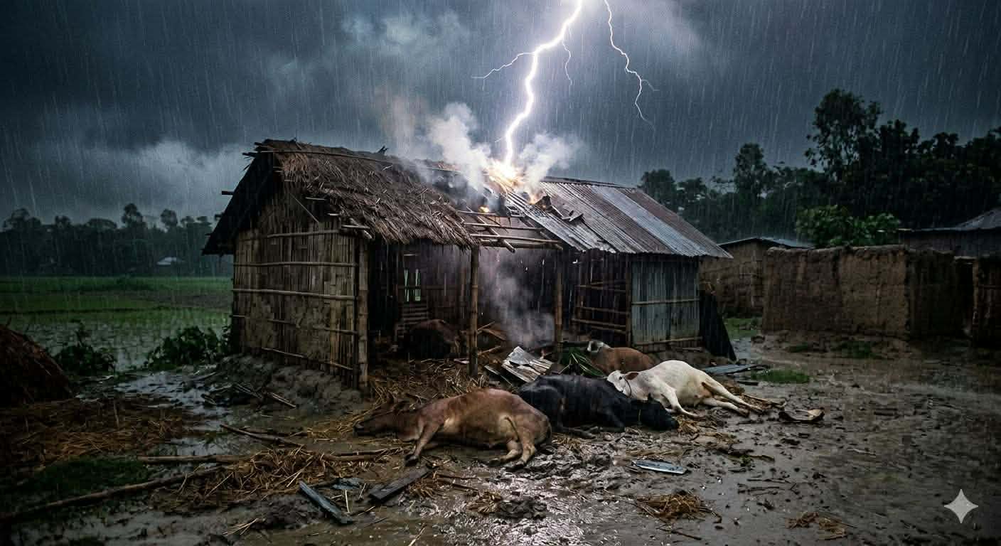 শরণখোলায় বজ্রপাতে গোয়ালঘরে থাকা চারটি গরু মারা গেছে