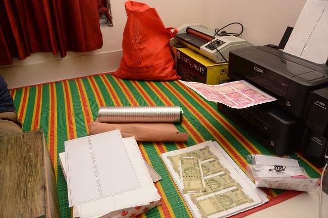 বাজারে প্রচলিত এ ফোর সাইজের কাগজের মধ্যে প্রথমে লাগানো হয় নিরাপত্তা সূতা। এরপর গাম দিয়ে আরেকটি কাগজের সঙ্গে লাগানো হয় সেটি। এই পর্যায়ে কাগজটি প্রিন্টারে দিলেই বের হয়ে আসতে থাকে বিভিন্ন মানের ভারতীয় মুদ্রা।