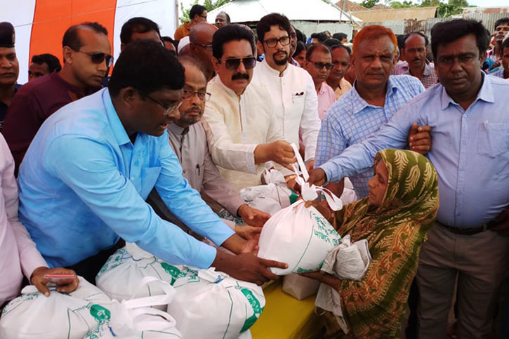নিজস্ব প্রতিবেদক : জাতীয় পার্টির চেয়ারম্যান গোলাম মোহাম্মদ কাদের দলের কর্মীদের যার যা আছে, তা নিয়েই বন্যার্ত মানুষদের পাশে দাঁড়ানোর আহ্বান জানিয়েছেন। জাতীয় পার্টির চেয়ারম্যান বলেন, আমরা পল্লীবন্ধু হুসেইন মুহম্মদ এরশাদের আদর্শের রাজনীতি করি। পল্লীবন্ধু আজীবন দুর্গত মানুষের সেবা করে গেছেন, আমরাও পল্লীবন্ধুর মতোই মানুষের সেবা করবো। দুঃস্থ মানুষের পাশে থাকবো। শনিবার সকাল সাড়ে ১০ টায় গাইবান্ধা জেলার সুন্দরগঞ্জ উপজেলার কাপাসিয়া ইউনিয়নের বাদামেরচর এলাকায় বন্যার্তদের মধ্যে ত্রাণ বিতরণকালে তিনি এসব কথা বলেন। এ সময় সাংবাদিকদের এক প্রশ্নের জবাবে জাতীয় পার্টির চেয়ারম্যান গোলাম মোহাম্মদ কাদের এমপি বলেন, জাতীয় পার্টির প্রতিটি নেতাকর্মী বন্যার্তদের পাশে থাকবেন। নদী ভাঙনের মতো প্রাকৃতিক দূর্যোগের কাছে মানুষ অসহায়। তবে পর্যায়ক্রমে নদী ভাঙনরোধে ব্যবস্থা নেবে সরকার। এ সময় পার্টির মহাসচিব মসিউর রহমান রাঙ্গা বলেন, ‘মানুষের এমন কষ্টে আমরা বসে থাকতে পারি না।’ দুর্গত প্রতিটি মানুষের ঘরে ত্রাণ পৌঁছে দিতে সরকারের প্রতি আহ্বানও জানান জাতীয় পার্টির মহাসচিব। এ সময় উপস্থিত ছিলেন জাতীয় পার্টির প্রেসিডিয়াম সদস্য ব্যরিস্টার শামিম হায়দার পাটোয়ারী এমপি, অ্যাডভোকেট রেজাউল ইসলাম ভূঁইয়া, মেজর (অব) সোহেল মোহাম্মদ রানা এমপি,ভাইস চেয়ারম্যান আহসান আদেলুর রহমান আদেল এমপি, সুন্দরগঞ্জ উপজেলা নির্বাহী কর্মকর্তা মো. সোলেমান আলী, সুন্দরগঞ্জ থানার ভারপ্রাপ্ত কর্মকর্তা এস এম আবদুস সোবহান, জাতীয় পার্টির যুগ্ম দপ্তর সম্পাদক এম এ রাজ্জাক খান, কেন্দ্রীয় নেতা সোলায়মান সামি, জাতীয় ছাত্র সমাজের কেন্দ্রীয় আহ্বায়ক মো. জামাল উদ্দিন, সদস্য সচিব ফয়সাল দিদার দিপুসহ স্থানীয় নেতারা।