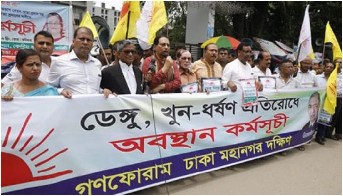 নিজস্ব প্রতিবেদক : ডেঙ্গু প্রতিরোধে সরকার ব্যর্থ হয়েছে দাবি করে গণফোরামের নেতারা বলেছেন, মন্ত্রীদের কথার দাপটে ও তোড়ে দেশের সব মশাদের ধ্বংস হওয়ার কথা। এসময় তারা ডেঙ্গু প্রতিরোধে ব্যর্থতার জন্য ঢাকার দুই সিটি মেয়রের পদত্যাগও দাবি করেন। সোমবার ডেঙ্গু, খুন-ধর্ষণের প্রতিবাদে রাজধানীর জাতীয় প্রেসক্লাবের সামনে গণফোরামের অবস্থান কর্মসূচিতে এসব কথা বলেন দলটির নেতারা।
