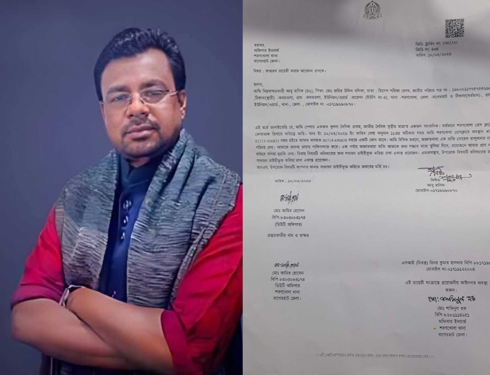 সাংবাদিক আবু হানিফ-কে প্রাণনাশের হুমকি,থানায় জিডি