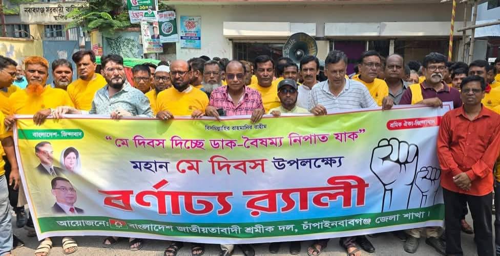 আন্তর্জাতিক শ্রমিক দিবস উপলক্ষে চাঁপাইনবাবগঞ্জ জেলা শ্রমিক দলের রালী ও পথসভা