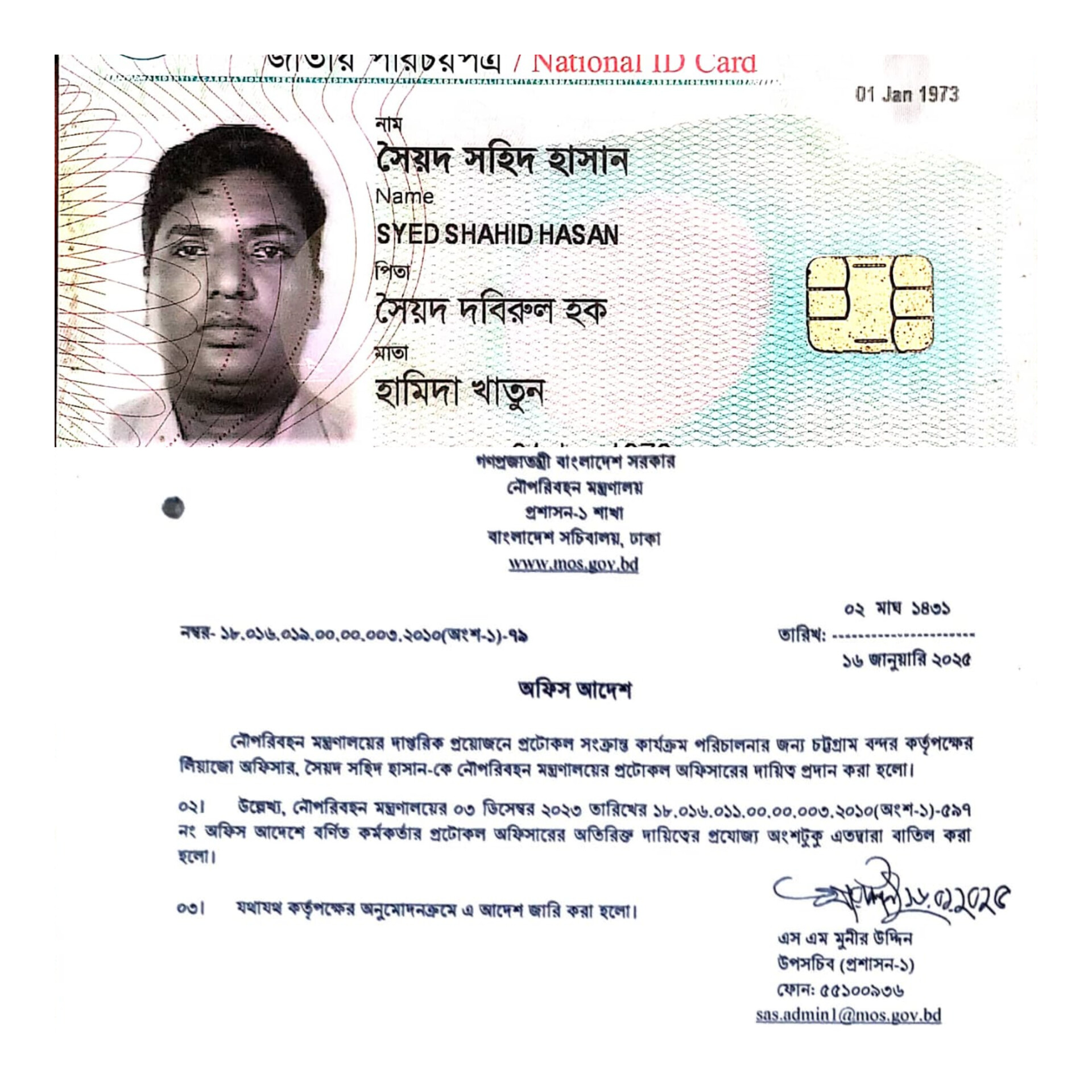 ফ্যাসিস্ট আওয়ামীলীগের প্রেতাত্মা চিহ্নিত সাবেক নৌপরিবহণ মন্ত্রী শাহজাহান খানে ইশারায় চলছে চট্টগ্রাম বন্দরের কার্যক্রম : বাস্তবায়নে তার ভাতিজা সহীদ হাসান, বন্দর সচিব ওমর ফারুক ও পলাতক সাবেক সিবিএ সাধারণ সম্পাদক ফটিক