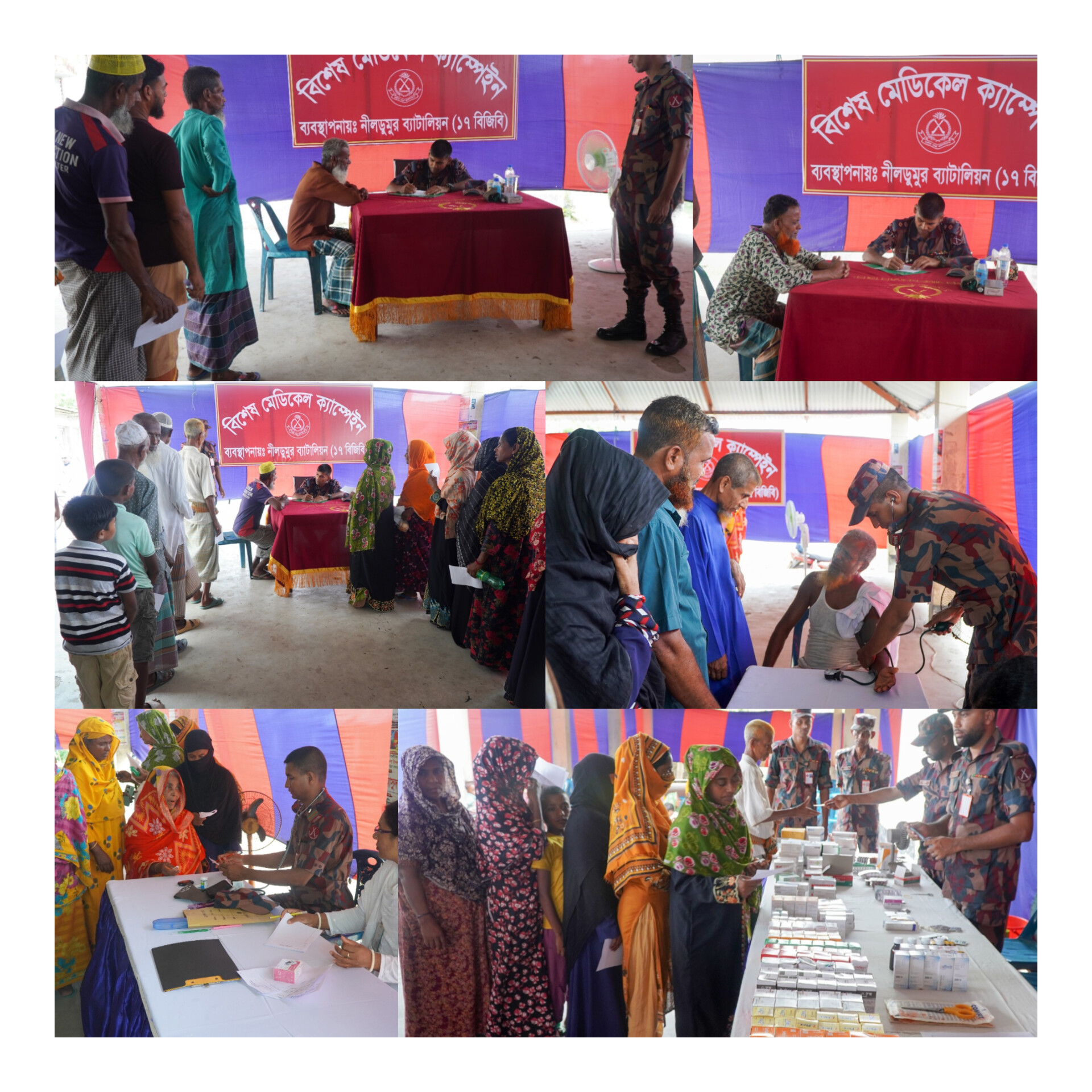 বিজিবির মানবিক সহায়তা : ফেনীতে বন্যার্তদের মাঝে খাদ্যসামগ্রী বিতরণ